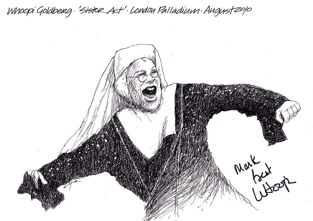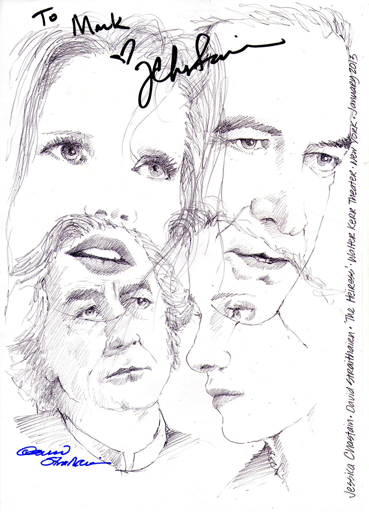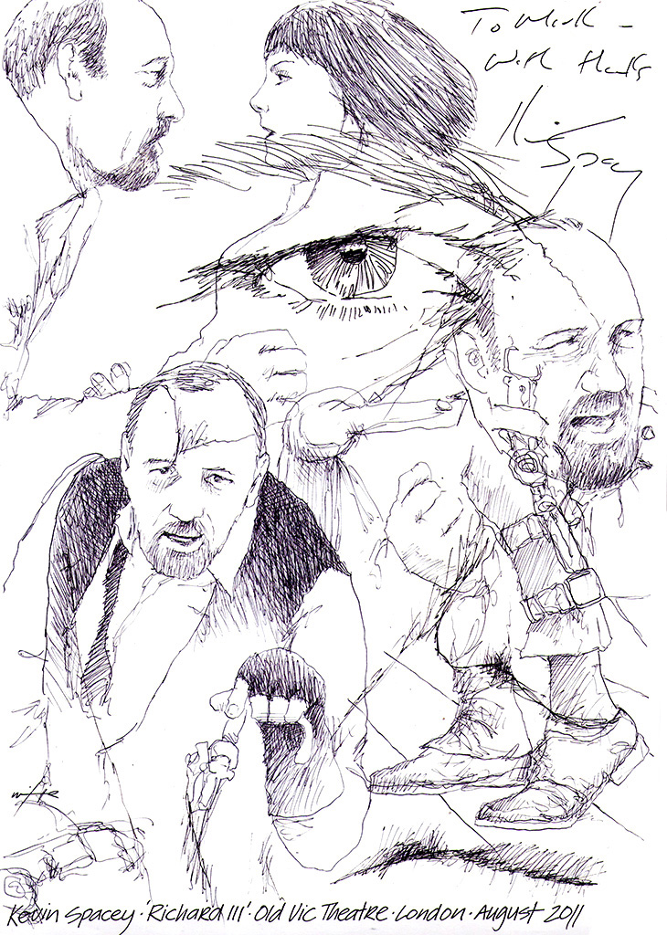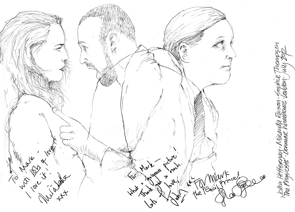 A revival of Noël Coward’s Blithe Spirit had transferred there after a regional tour in 2010. Alison Steadman had signed the single sketch for me a couple of weeks earlier and I left her a copy. She was talking to the guy who feeds the pigeons, so I asked if she could sign the cast sketch. She was more than happy to, saying “we all really love your work, it’s excellent, thank you,” which was nice to hear.