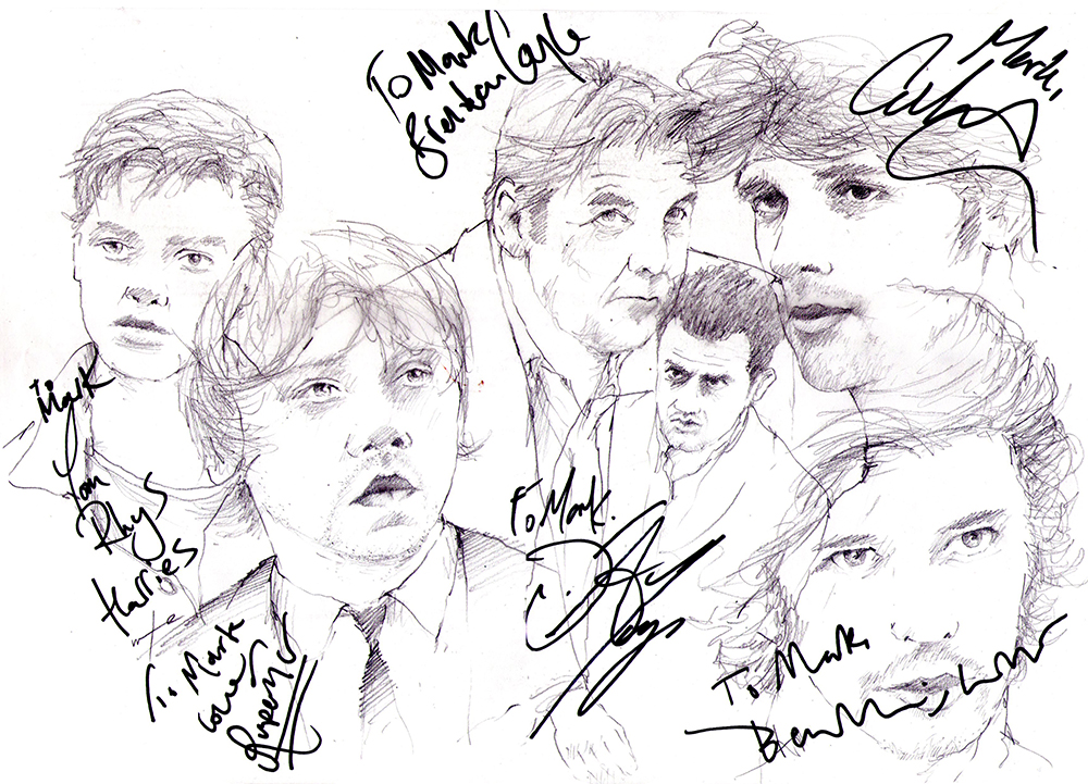 After a year and a half trying, I finally managed to get Cillian Murphy (pronounced Kil-ian, not Sil-ian as a fellow collector warned me – an error I and many others have made) to sign a sketch for me. He is a fiercely private person who shirks celebrity status. The Cork-born, former law student and rock musician is also known for his distinctive eyes and chameleonic performances in diverse roles.