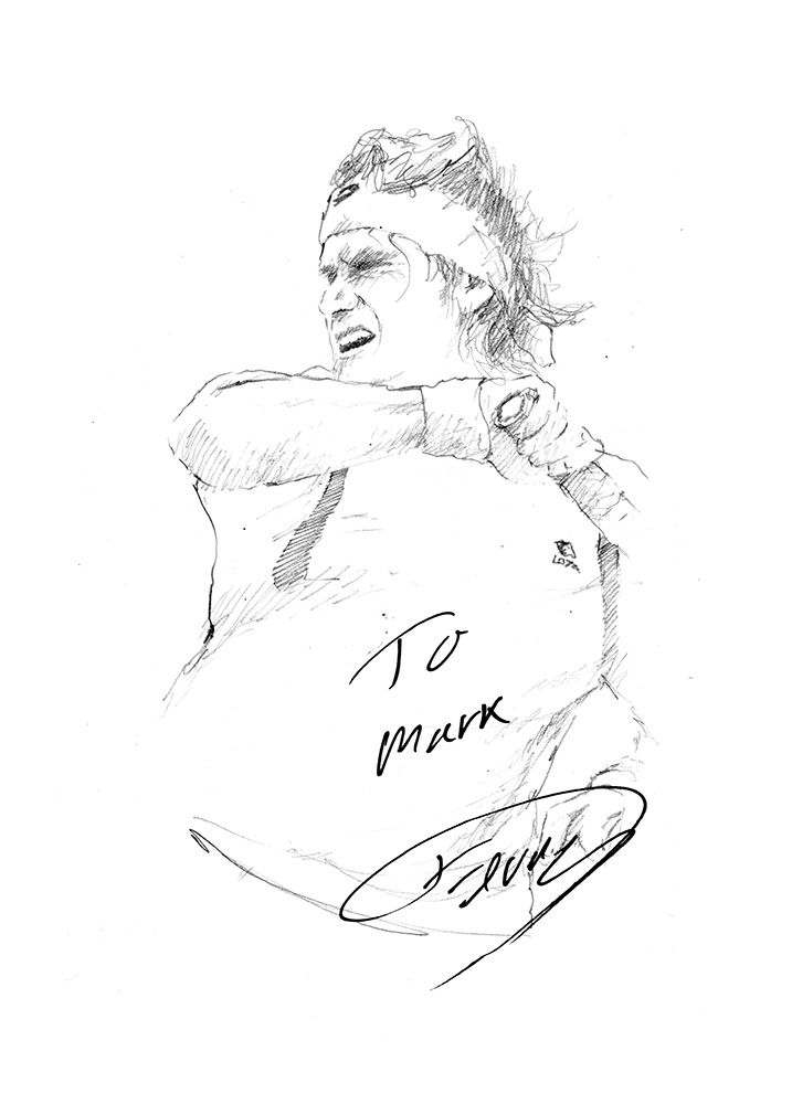 Drawing: David Ferrer Posted on November 7, 2013 by Mark Winter / Chicane One of my favourite tennis players is the Spaniard David Ferrer. Last month he reached the World Number 3 spot. He signed my sketch at the O2 yesterday night, before playing his second match at the ATP World Tennis Finals. Share this: Click to share on X (Opens in new window) X Click to share on Facebook (Opens in new window) Facebook Click to email a link to a friend (Opens in new window) Email Click to share on Pinterest (Opens in new window) Pinterest Click to share on LinkedIn (Opens in new window) LinkedIn Click to share on Tumblr (Opens in new window) Tumblr Click to share on Reddit (Opens in new window) Reddit Like Loading... Related