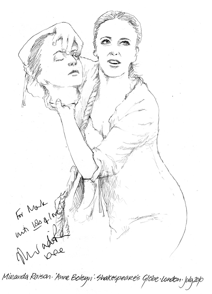 Published November 25, 2013 at 721 × 1000 in Drawing: Miranda Raison in Anne Boleyn at Shakespeare’s Globe Theatre