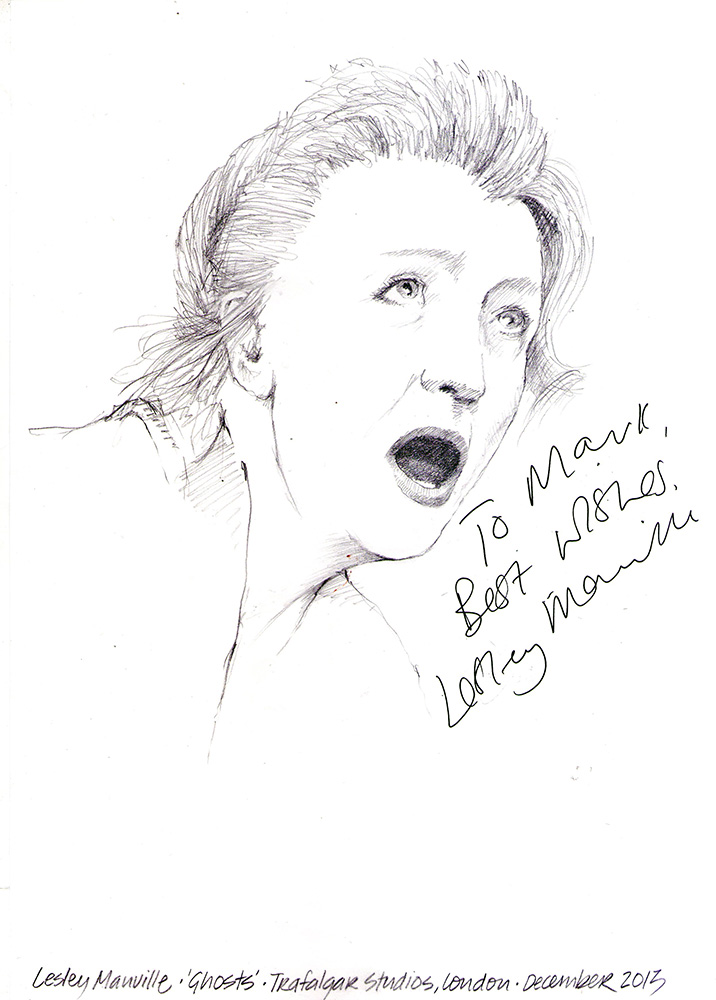 Published December 28, 2013 at 716 × 1000 in Drawing: Lesley Manville in Ghosts at Trafalgar Studios