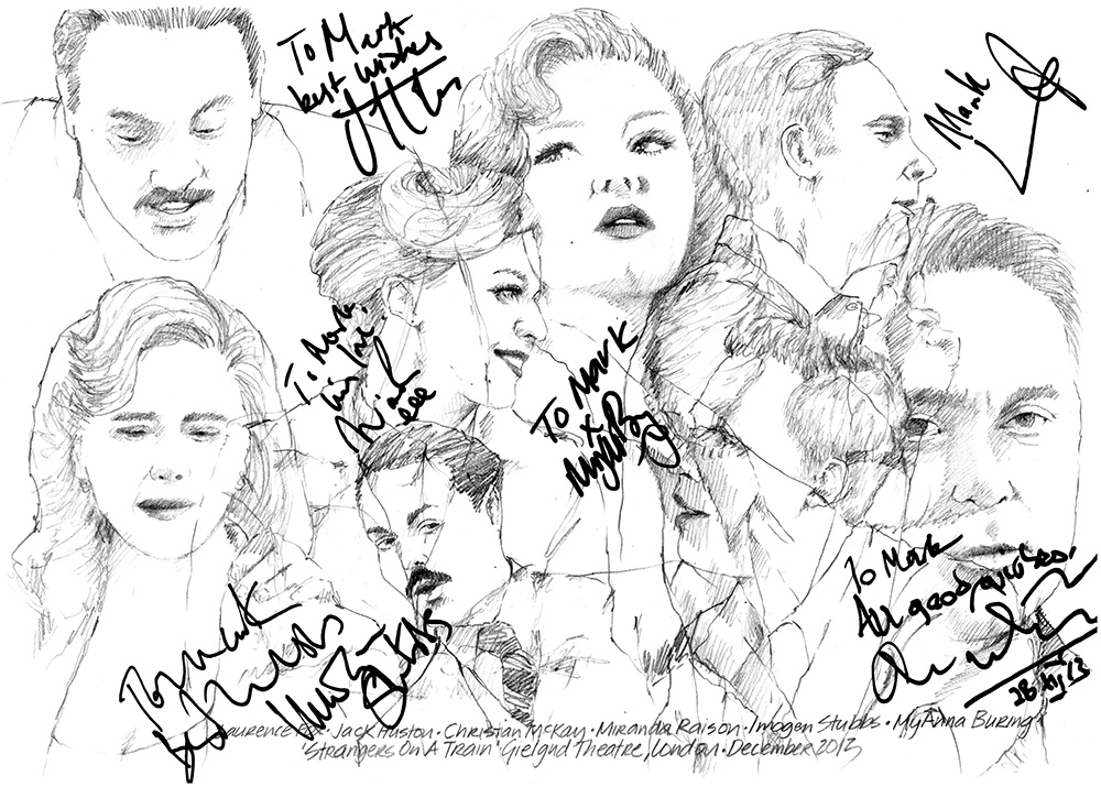 Published December 29, 2013 at 1000 × 715 in Drawing: Strangers On A Train starring Laurence Fox, Jack Huston, MyAnna Buring, Christian McKay and Miranda Raison
