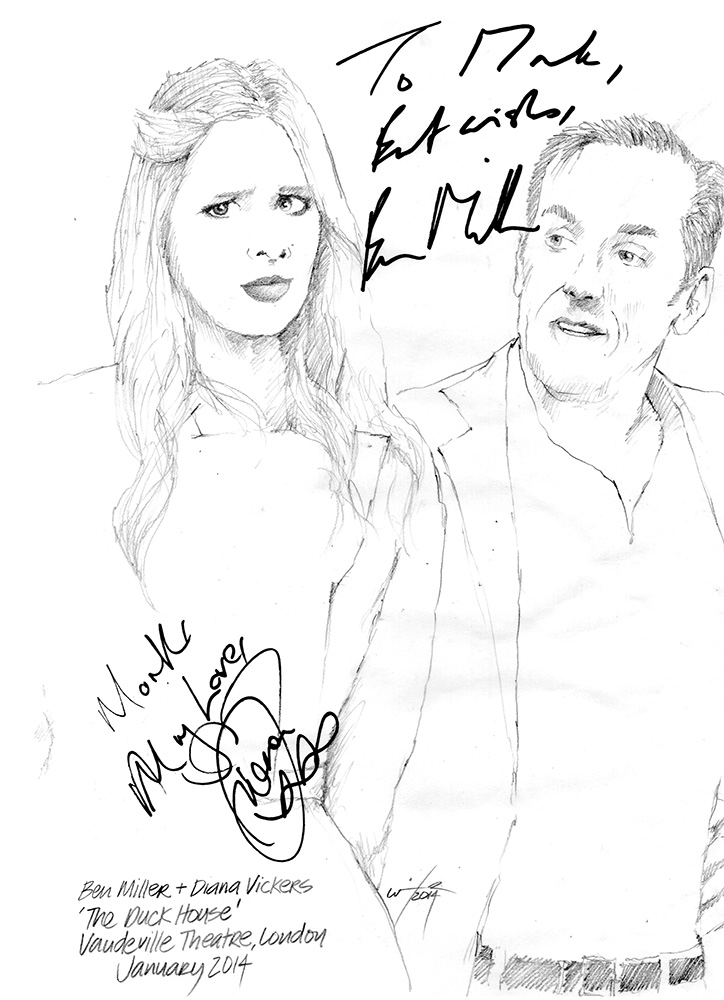 Published January 31, 2014 at 724 × 1000 in Drawing: Ben Miller and Diana Vickers in The Duck House at The Vaudeville Theatre