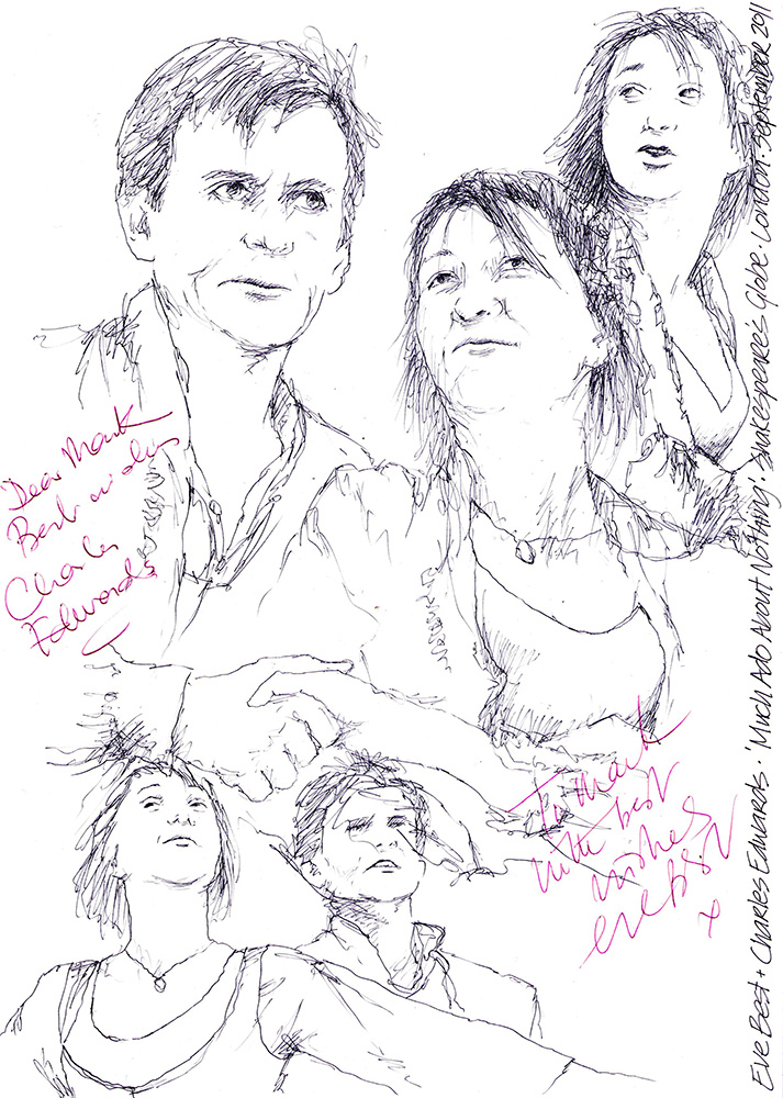 Published February 18, 2014 at 713 × 1000 in Drawing: Eve Best and Charles Edwards in Much Ado About Nothing at The Globe