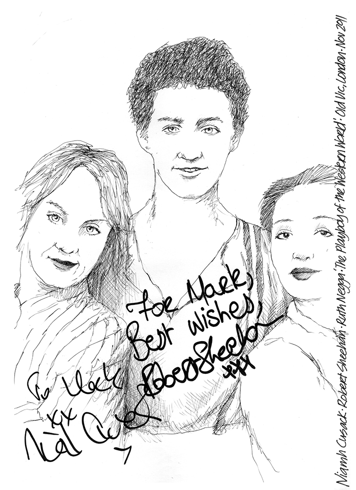 Published May 15, 2014 at 727 × 1000 in Drawing: Niamh Cusack, Robert Sheehan and Ruth Negga in The Playboy of the Western World