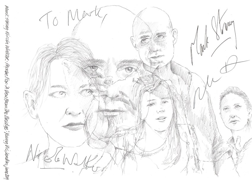 Published June 12, 2014 at 1000 × 715 in Drawing: Mark Strong, Nicola Walker and Phoebe Fox in A View From The Bridge at The Young Vic