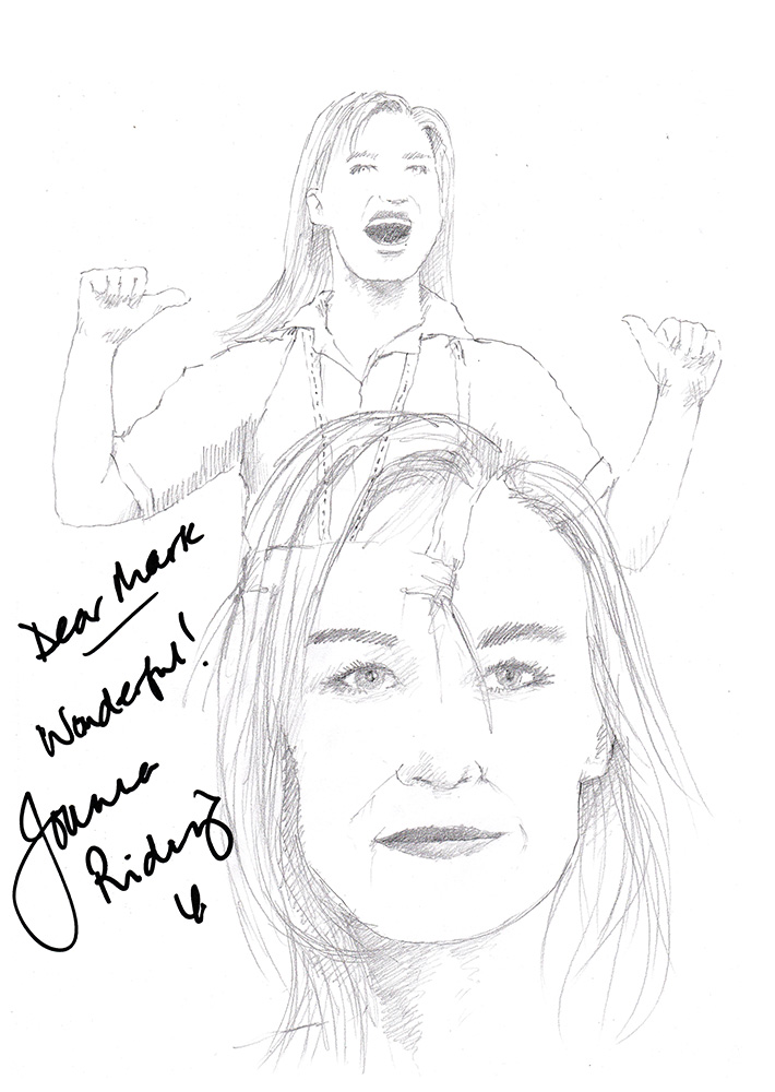 Published September 13, 2014 at 710 × 1000 in Drawing: Joanna Riding in The Pajama Game at The Shaftesbury Theatre