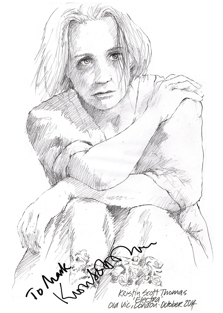 Published October 31, 2014 at 715 × 1000 in Drawing: Kristin Scott Thomas in Electra at The Old Vic Theatre