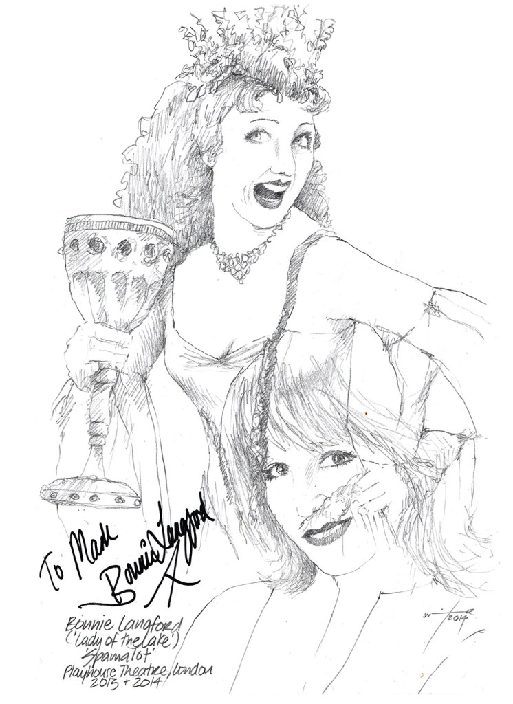 Published January 4, 2015 at 1000 × 1373 in Drawing: Bonnie Langford as The Lady of the Lake in Monty Python’s Spamalot