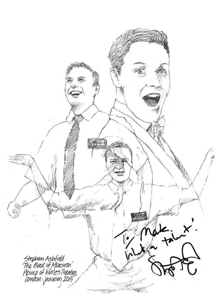 Published January 27, 2015 at 1000 × 1373 in Sketch: Stephen Ashfield, Elder McKinley in The Book of Mormon