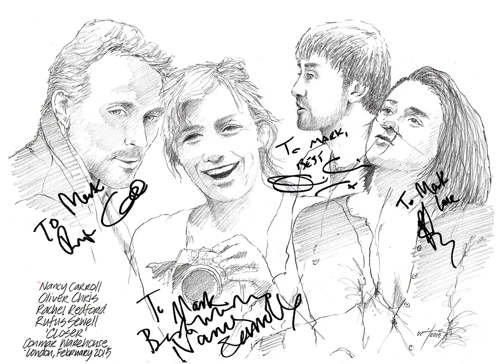 Published March 3, 2015 at 1000 × 728 in Sketch: Nancy Carroll, Oliver Chris, Patrick Marber, Rachel Redford, Rufus Sewell in Closer