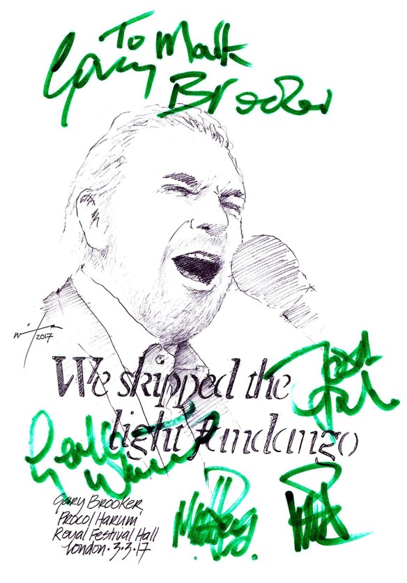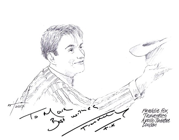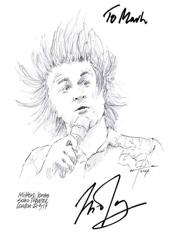 He did a couple of nights at the Soho Theatre in London last week trying out new material for his next tour and signed my sketch with a two-liner.
