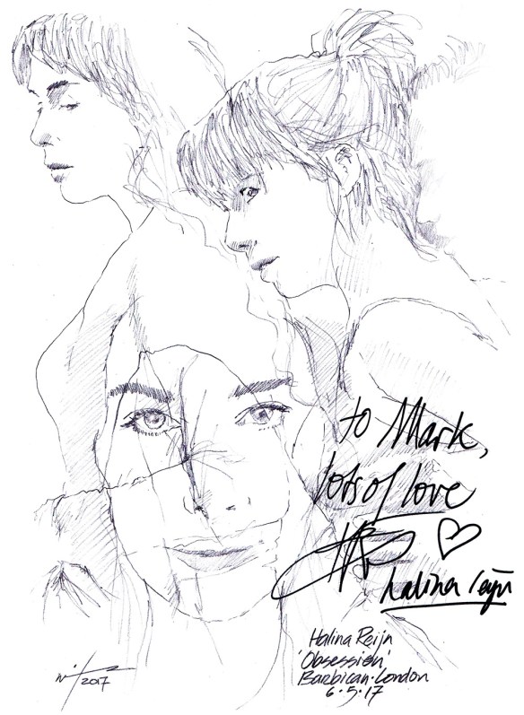 I met the very engaging Halina before last Saturday’s matinee and she was more than happy with my drawing and signed it. The production, which runs until 20 May, screens nationwide in selected UK cinemas tonight as part of National Theatre Live.
