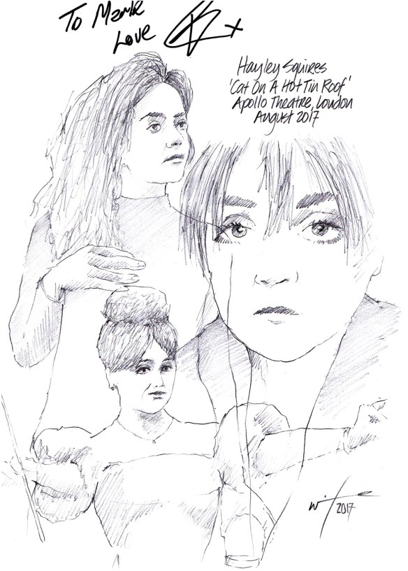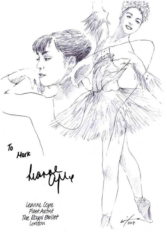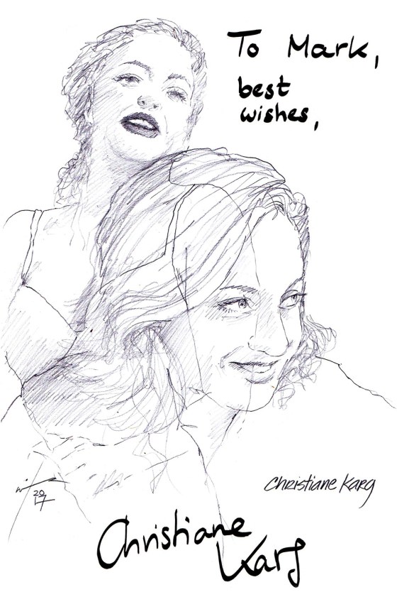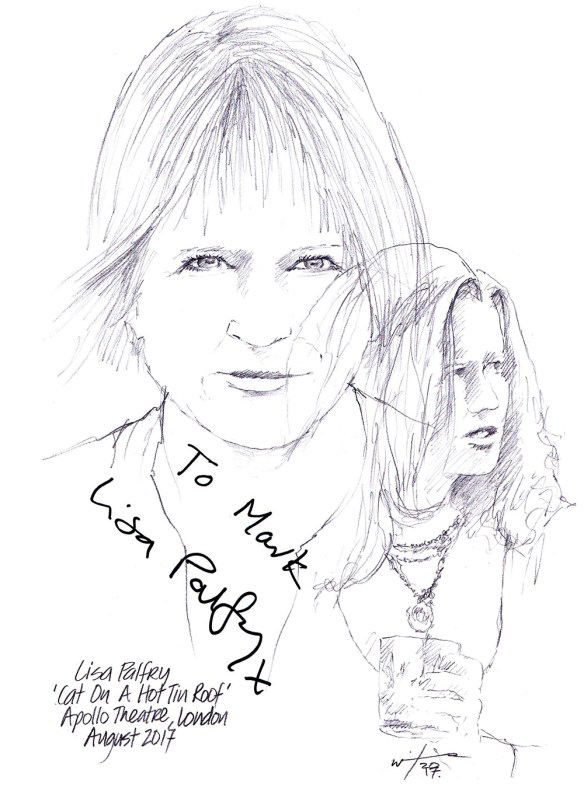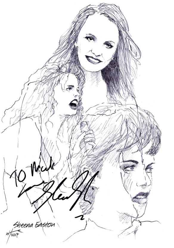 Scottish songstress Sheena Easton made her West End debut this year as Dorothy Brock in the revival of the hit musical 42nd STREET at the Theatre Royal in Drury Lane. The two-time Grammy Award winner has sold over 20 million records worldwide with Gold and Platinum albums in the US, Europe and Asia. She is the first and only artist to have top 5 hits in five different Billboard charts consecutively. Sheena has appeared on Broadway in MAN OF LA MANCHA and as Rizzo in GREASE. I left this sketch at the stage door and it came back signed and dedicated.
