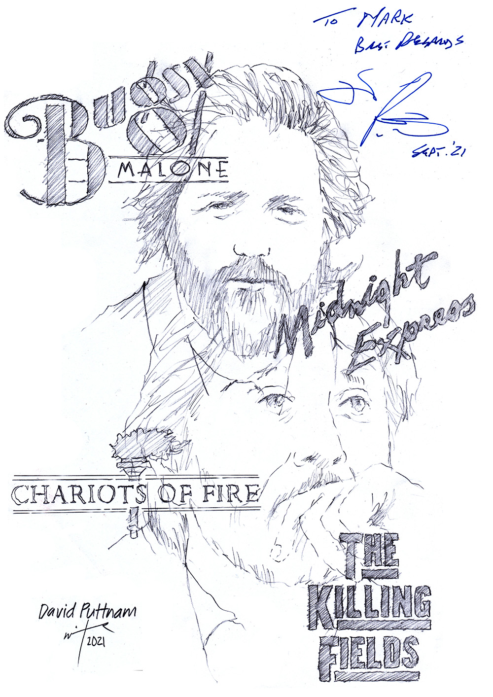 After his knighthood in 1995, Sir David received a life peerage two years later, sitting on the Labour benches in The House of Lords, where I sent this sketch, which Lord Puttnam kindly returned, signed and dedicated, accompanied by a nice note.