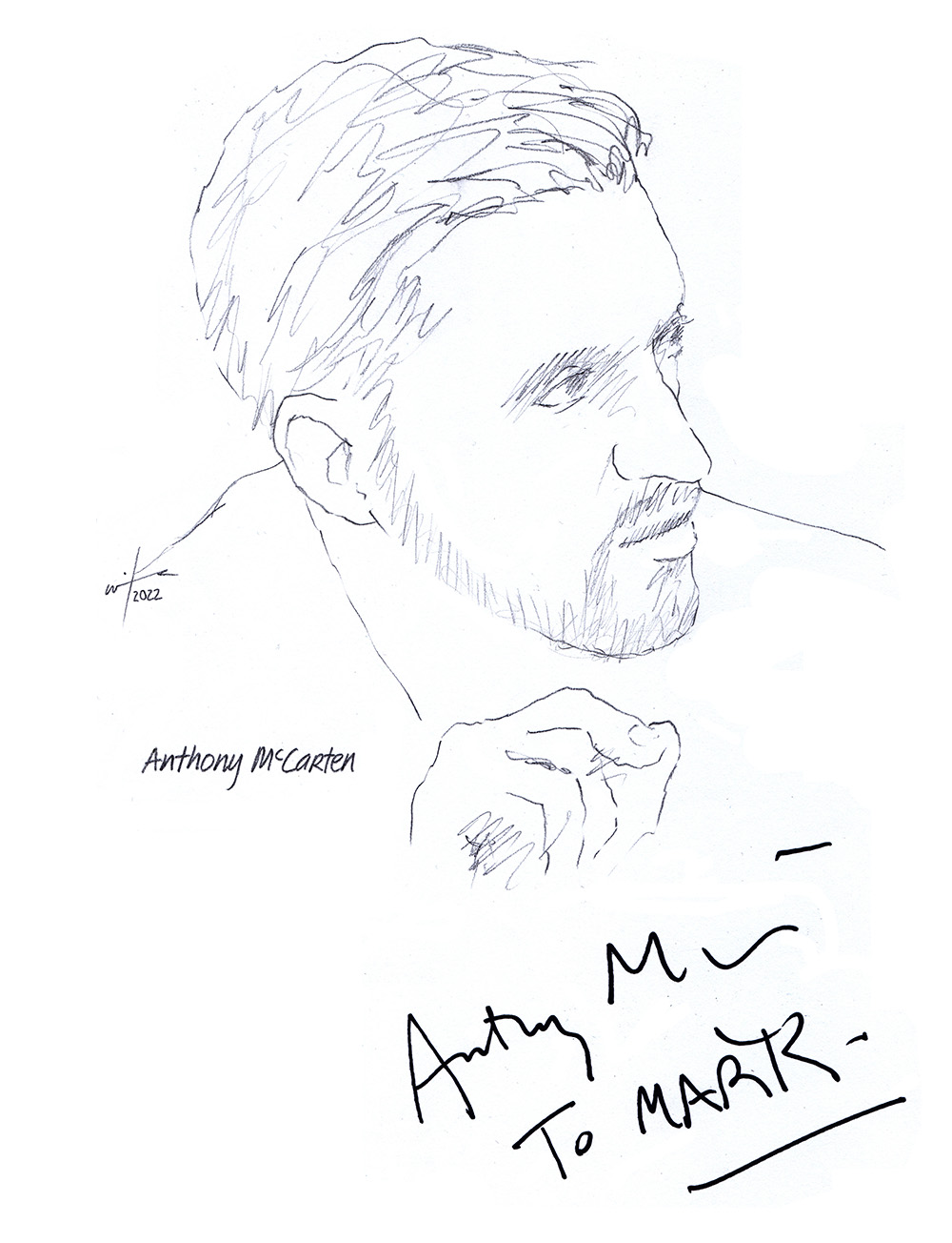 As you can see, Anthony is one of the busiest people on the planet, but I managed to catch up with him at The Old Vic in February during the first week of THE COLLABORATION, where we acknowledged our Massey alumni status and he signed my portrait sketch.