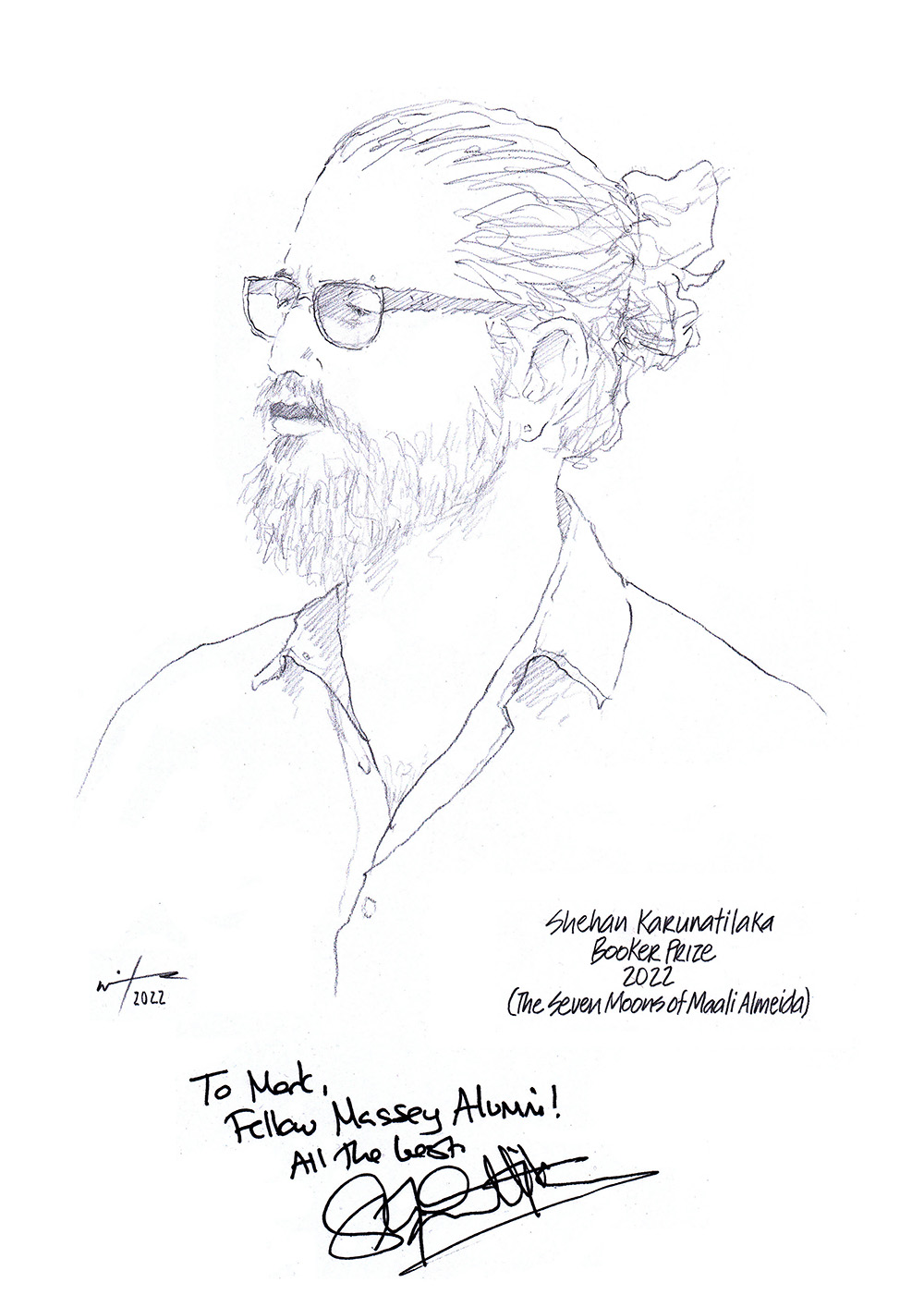 As you can see, Anthony is one of the busiest people on the planet, but I managed to catch up with him at The Old Vic in February during the first week of THE COLLABORATION, where we acknowledged our Massey alumni status and he signed my portrait sketch.