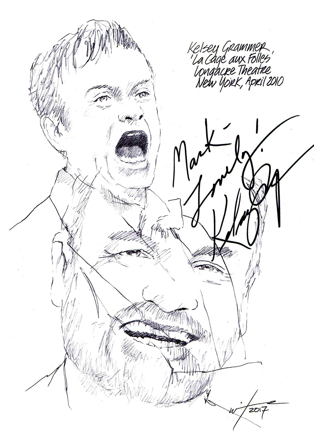 The mail at the moment is about as reliable as the weather with strikes and cyber attacks, but I did receive a very pleasant surprise in the post last week when a small line sketch I did and sent a year ago to Matthew Broderick and his wife Sarah Jessica Parker when they featured in the Broadway revival of Neil Simon’s PLAZA SUITE came back signed and dedicated.