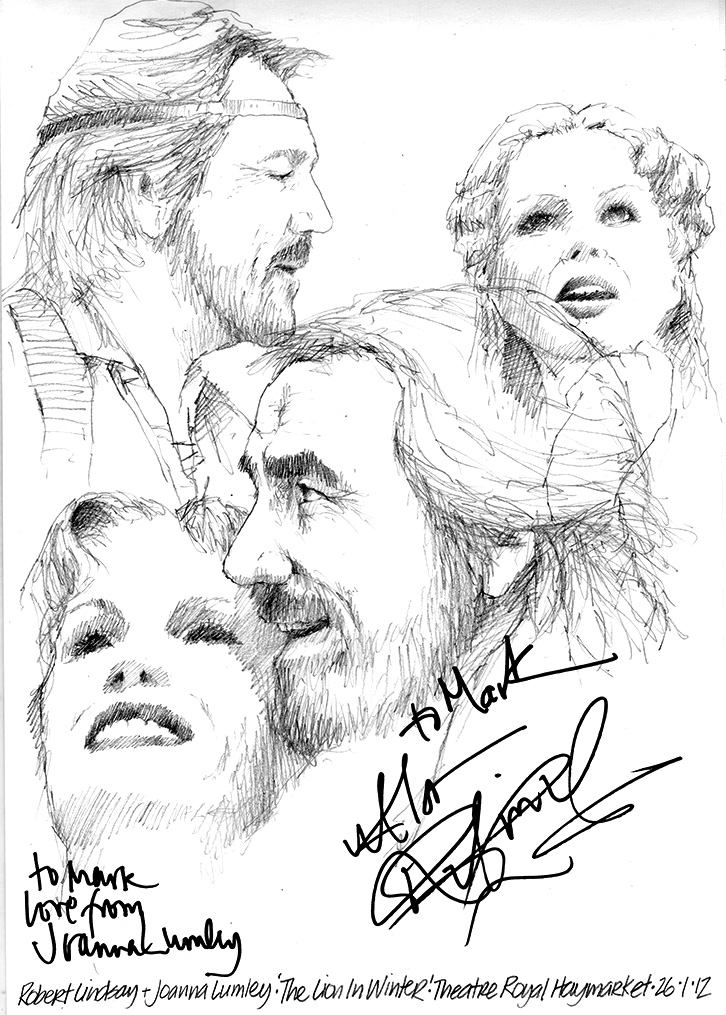 I was the only scribble stalker waiting at the stage door of the Theatre Royal, Haymarket on a Friday night. I thought it best to get Robert Lindsay and Joanna Lumley – the leads in A Lion in Winter – going in, leaving the rest of my Friday evening for more convivial pursuits.