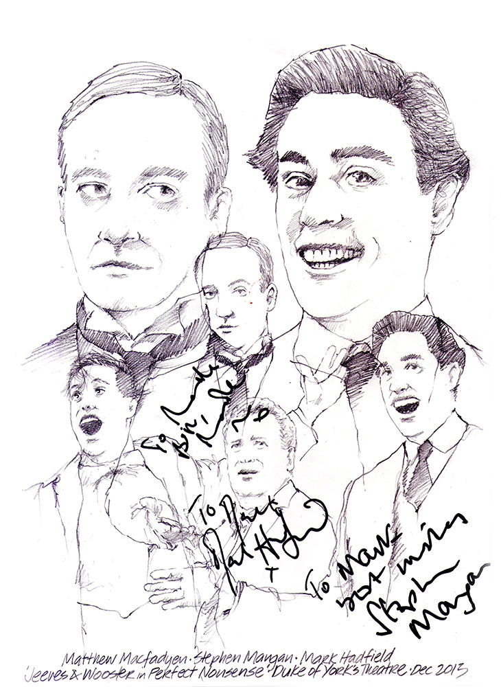 I drew this sketch, but didn’t get a chance to get it signed at the time.I managed to catch-up with Stephen when he appeared in JEEVES & WOOSTER at the Duke of York’s a year later and posted it here. This week I completed the mission when Lisa also ‘graphed it for me at the Theatre Royal Haymarket where she is featuring in the Shakespeare double-Bill (sorry), MUCH ADO ABOUT NOTHING and LOVE’S LABOUR’S LOST. So here it is again.